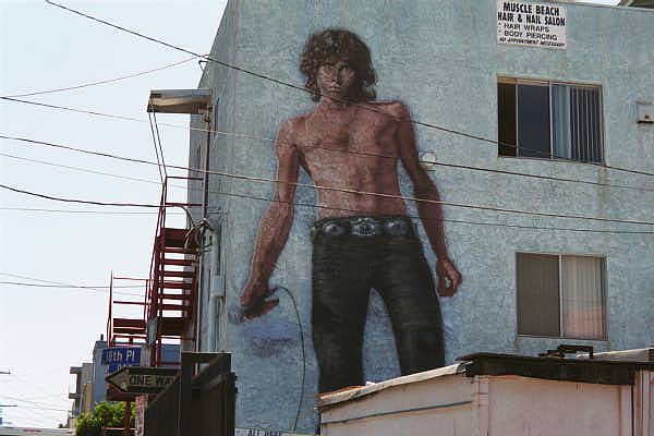 Large portrait of Jim Morrison.